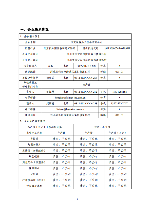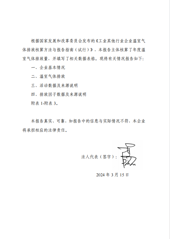 保定萊盛2023年溫室氣體排放報(bào)告(公示簡版)