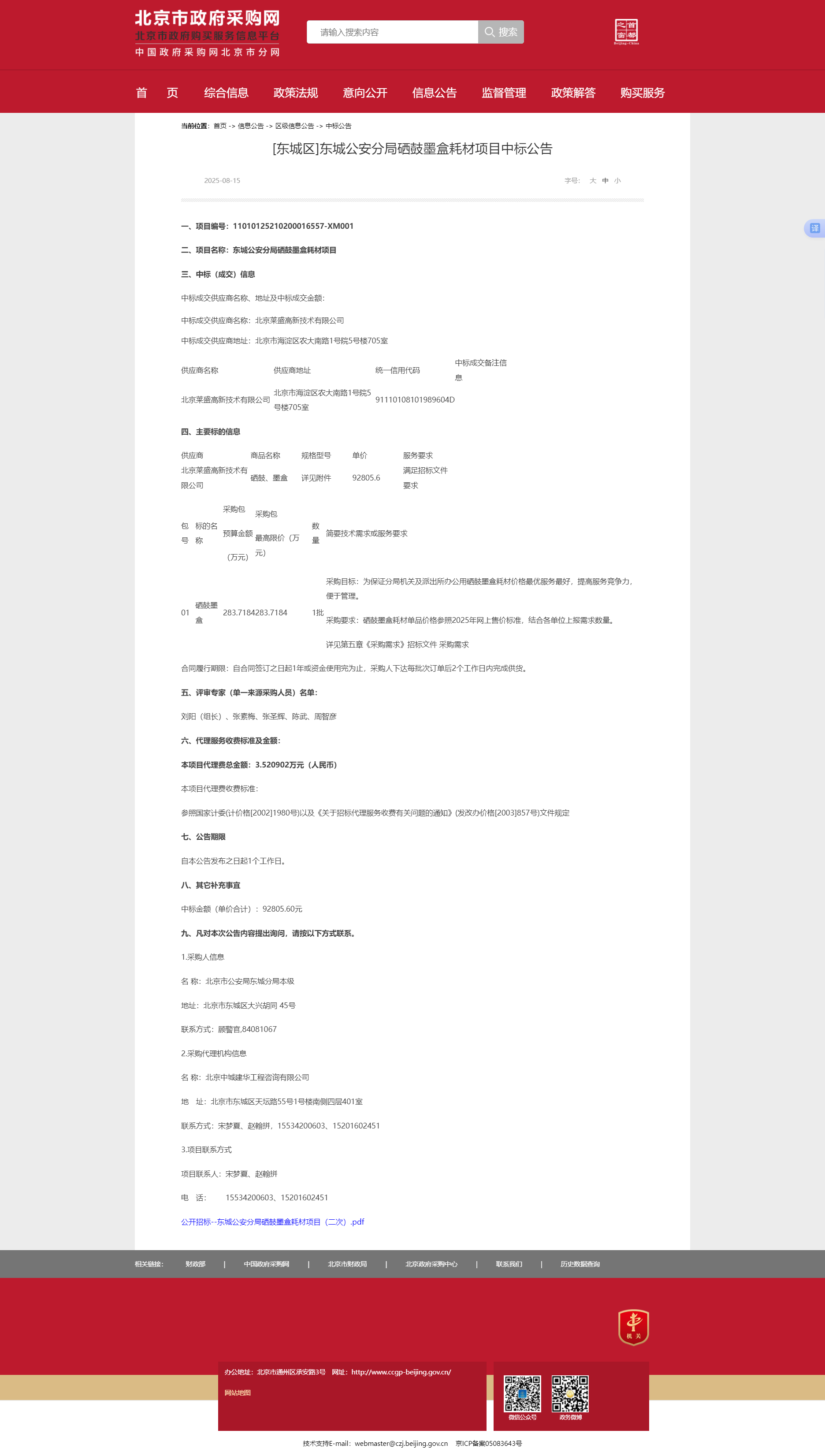 萊盛中標東城公安分局硒鼓墨盒耗材項目公告